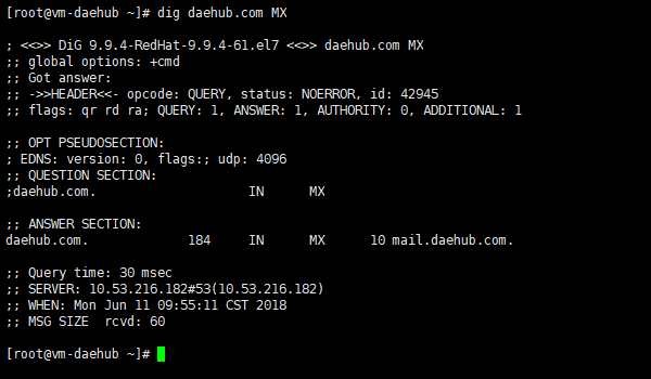 # dig daehub.com MX