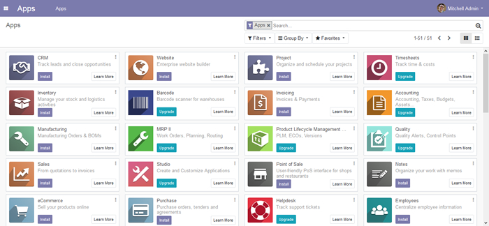 Odoo 是一个多合一软件包,其包含了内容管理系统(CRM)、网站、电子商务、账务、库存、会计、制造和项目管理等各个软件模块。Odoo 分为商业版和社区版,其社区版是遵从 GNU GPLv3 协议的开源软件。