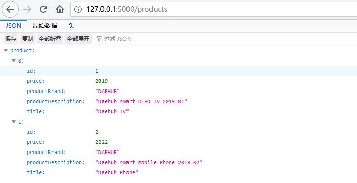 如果现在运行程序,并通过浏览器访问”http://127.0.0.1:5000/products”,就可以得到如下查询结果: