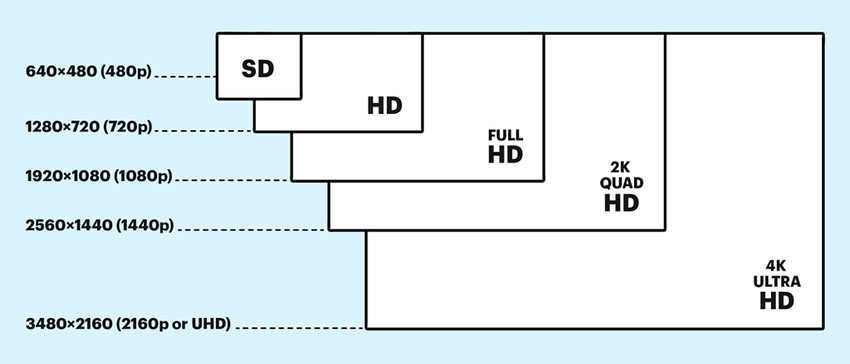 上图很好的展示了从标清(SD)到超高清(4K)分辨率的像素数量,例如一台标有 1920×1080 的显示器横向有 1920 个像素,纵向有 1080 个像素,总共超过两百万个像素点。更多的像素意味着更丰富的视觉细节,但也意味着 GPU 需要进行更多的渲染工作。