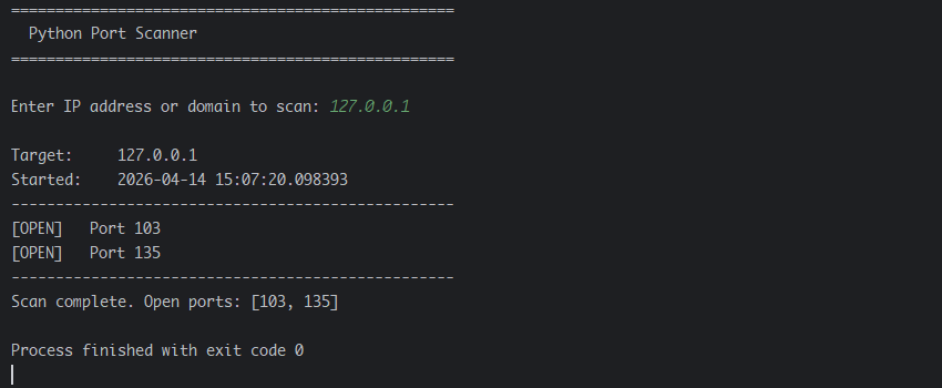 sock.settimeout(0.5) 指示套接字在 0.5 秒内如果没有响应就放弃连接。如果没有此设置,扫描器会在过滤后的端口上无限期地等待,耗时数小时才能完成扫描。